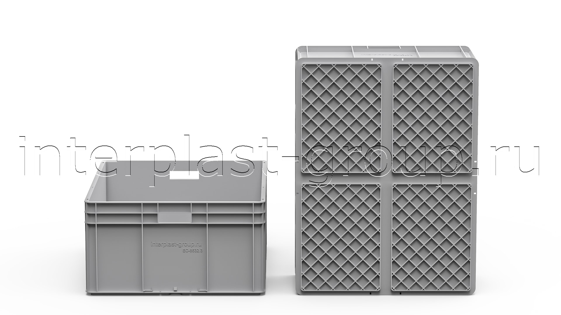 Евроконтейнер открытые ручки/усиленное дно (серый), 800x600x320 мм