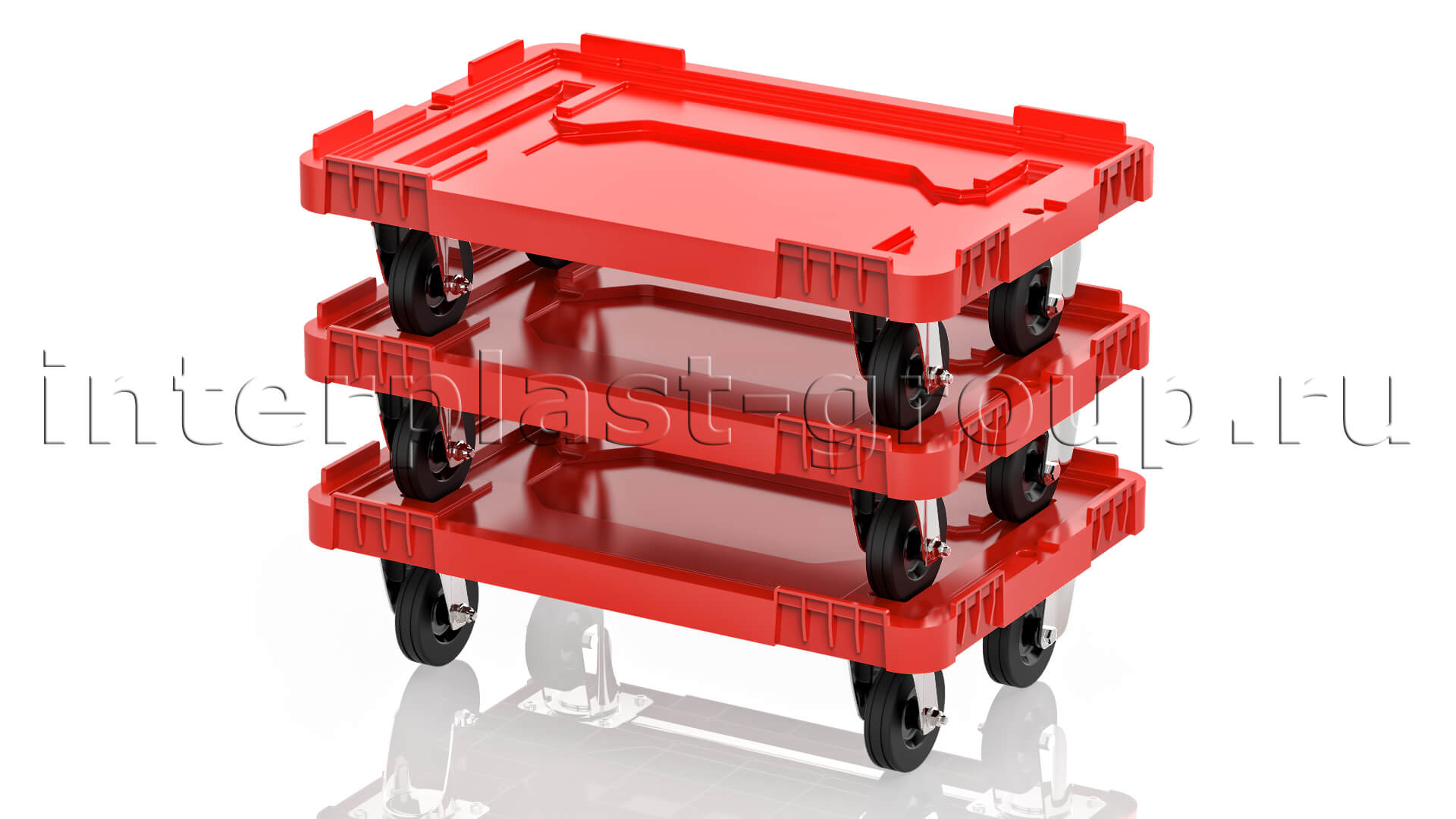Тележка пластиковая сплошная без тормозов усиленная красная в Электростали