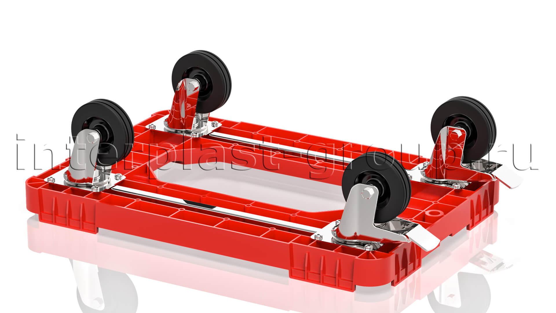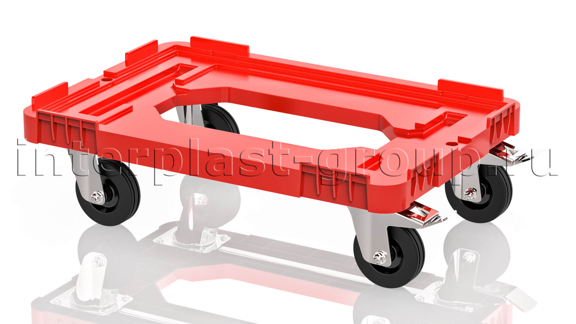Тележка пластиковая с отверстием 2 колеса с тормозом усиленная красная в Электростали
